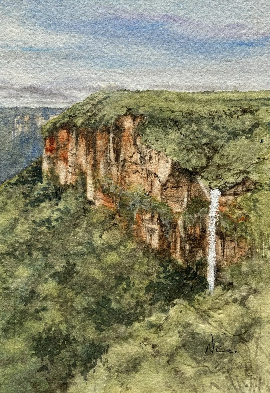 This series came about almost by accident, after painting miniatures for each of nature’s four elements – earth, water, air and fire. The subject of my miniature for ‘water’ was Jim Jim Falls, from Kakadu, up in the Northern Territory, and it inspired me to paint more. And why not? Waterfalls are gorgeous!